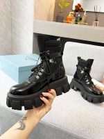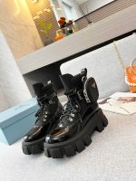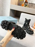 Prada Monolith 和尼龙织物闪亮黑色女式靴子 PRD