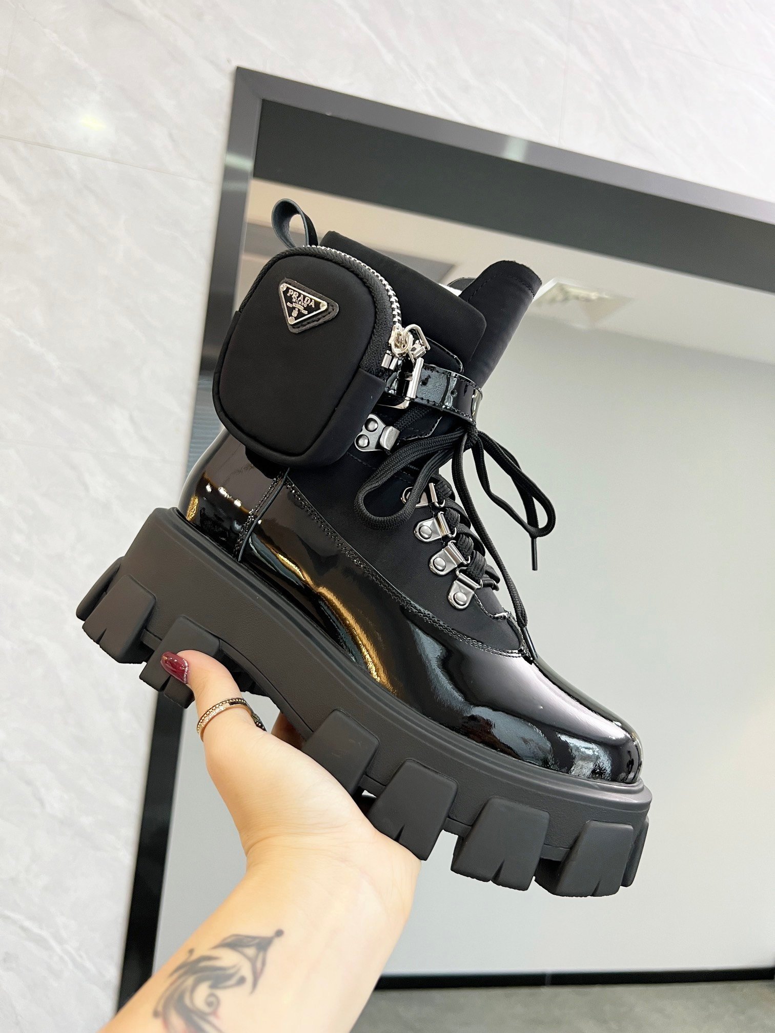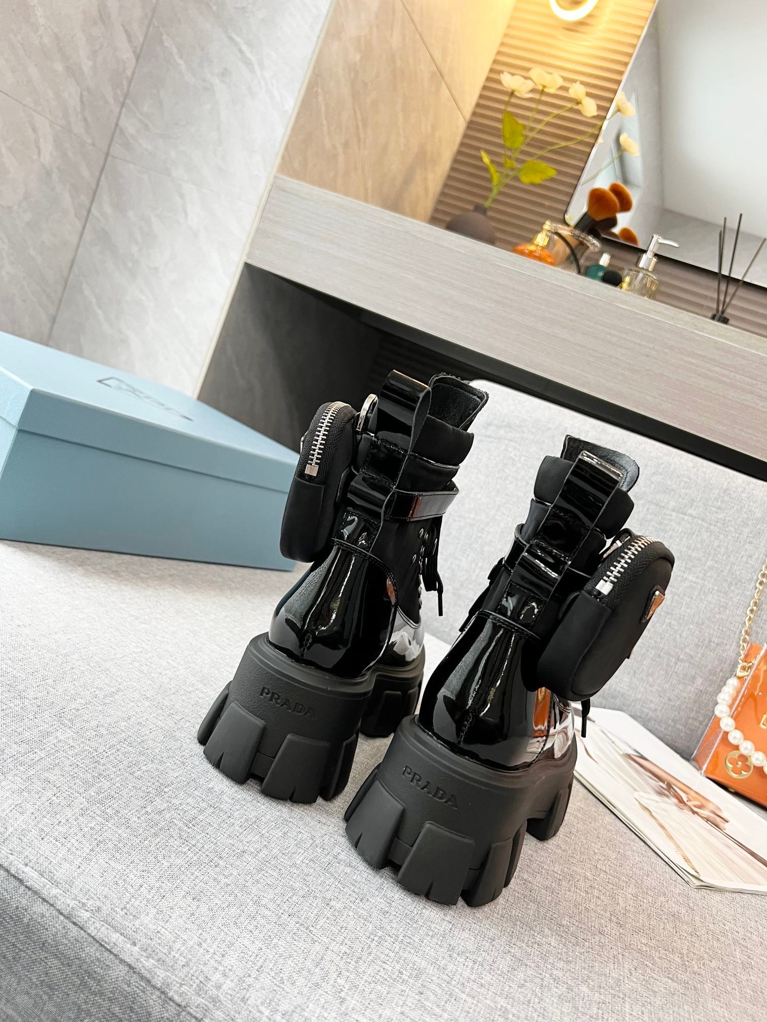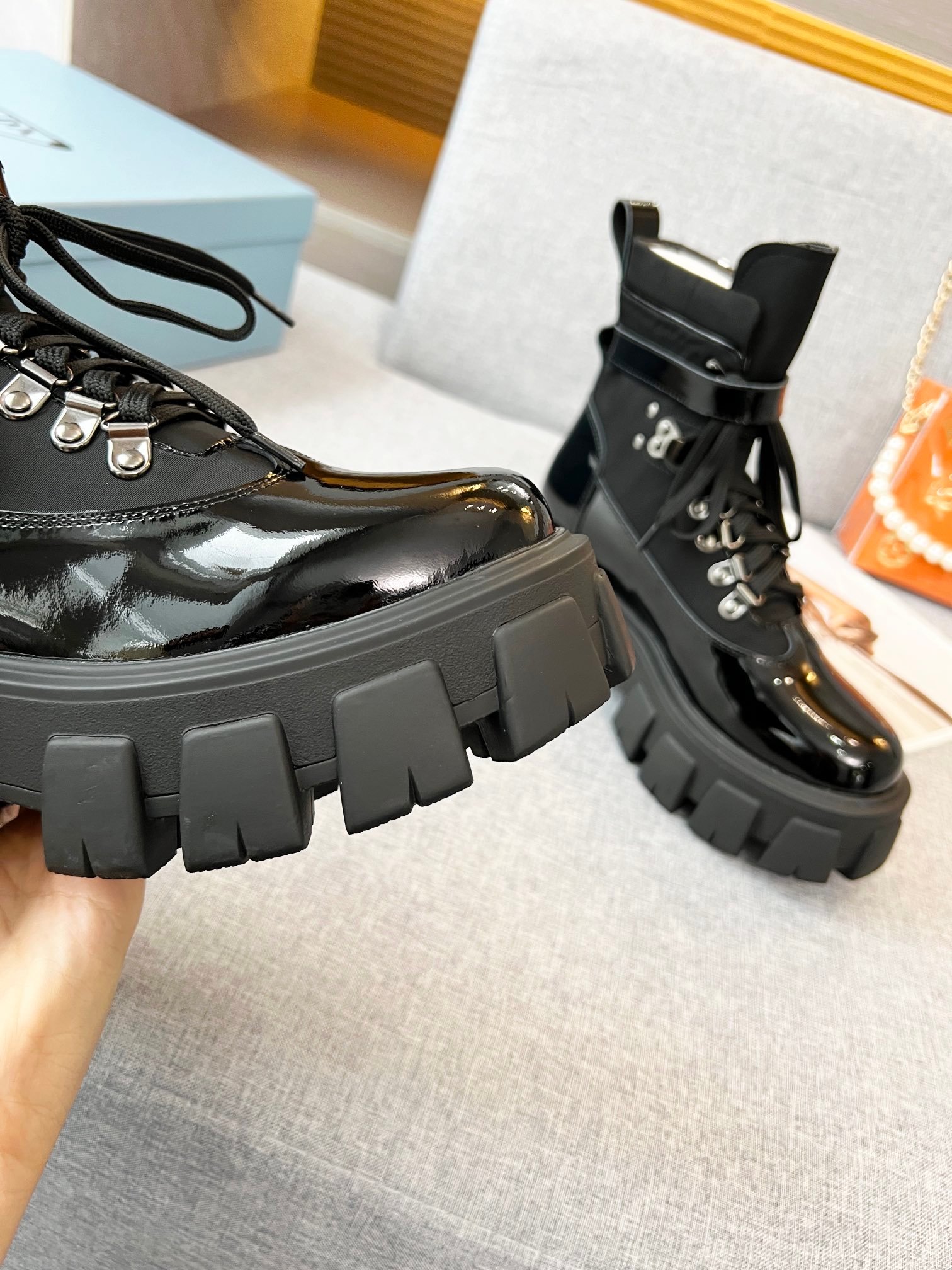 Prada Monolith 和尼龙织物靴子闪亮黑色女式 PRD