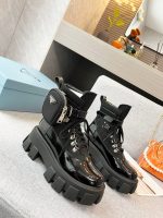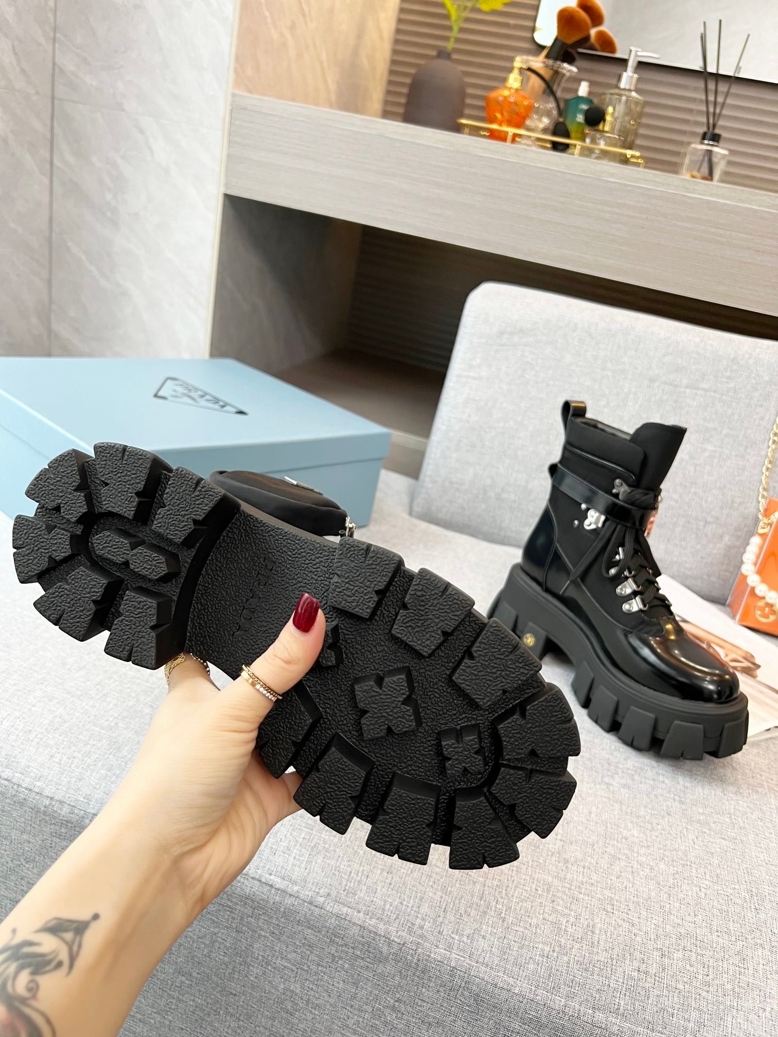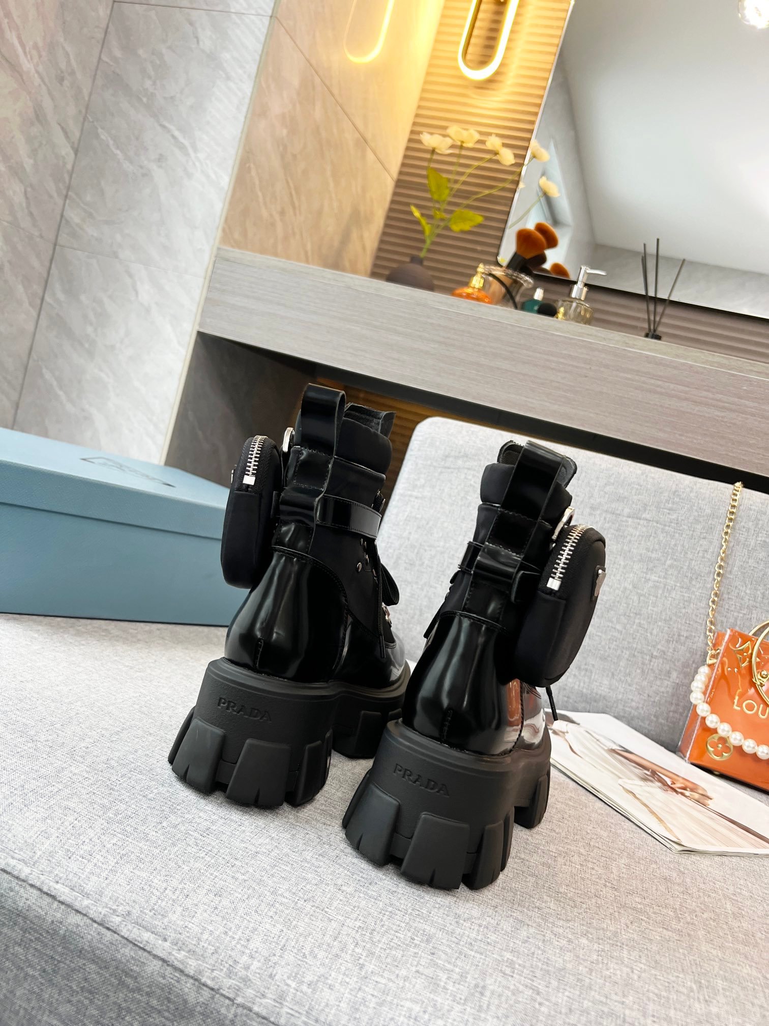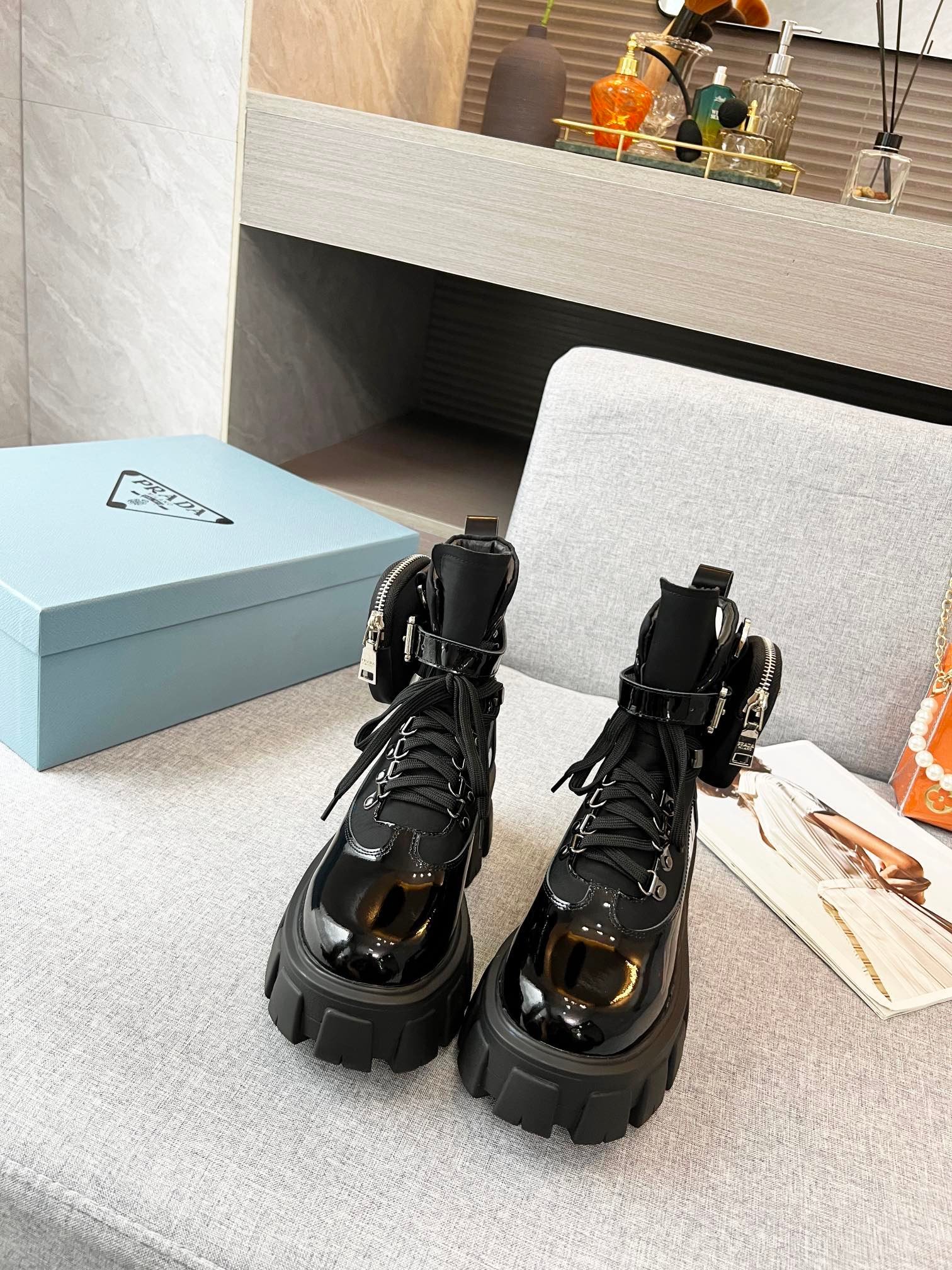 Prada Monolith 和尼龙织物靴子闪亮黑色女式 PRD