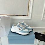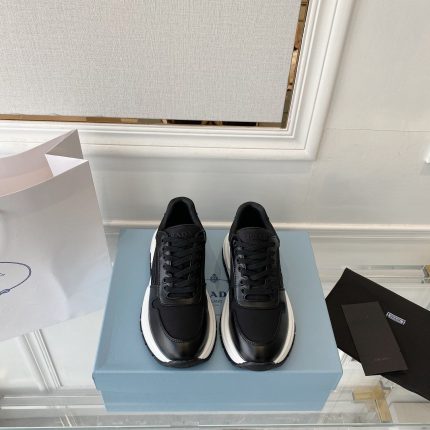 PRAX 01 运动鞋将优雅而创新的设计与 Prada 系列典型的技术材料融为一体。这款鞋采用 Re-Nylon(一种创新材料,由海洋中收集的回收塑料材料制成)和拉绒皮革制成。充满新运动精神的三角形标志在侧面脱颖而出,厚实的橡胶胎面鞋底赋予轮廓混合魅力。
