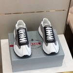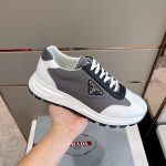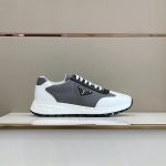 Prada Prax 01 男士灰色/白色再生尼龙拉绒运动鞋 1.8 英寸/45 毫米 PRD