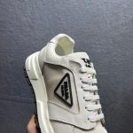 这款 Prada PRAX 01 运动鞋采用运动设计,采用 Re-Nylon Gabardine 制成,Re-Nylon Gabardine 是一种由回收、纯化制成的再生纱线海洋中收集的塑料垃圾、渔网和纺织废纤维。鞋面饰有缝线和标志性压花橡胶三角形徽标。鞋底具有独特的几何花纹。
