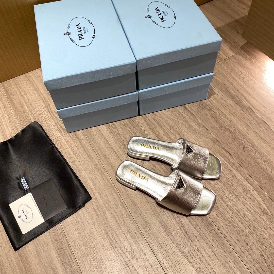 Prada Saffiano 女式拖鞋 银色 0.4 英寸/10 毫米 PRD