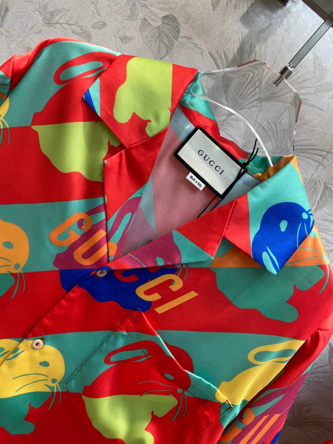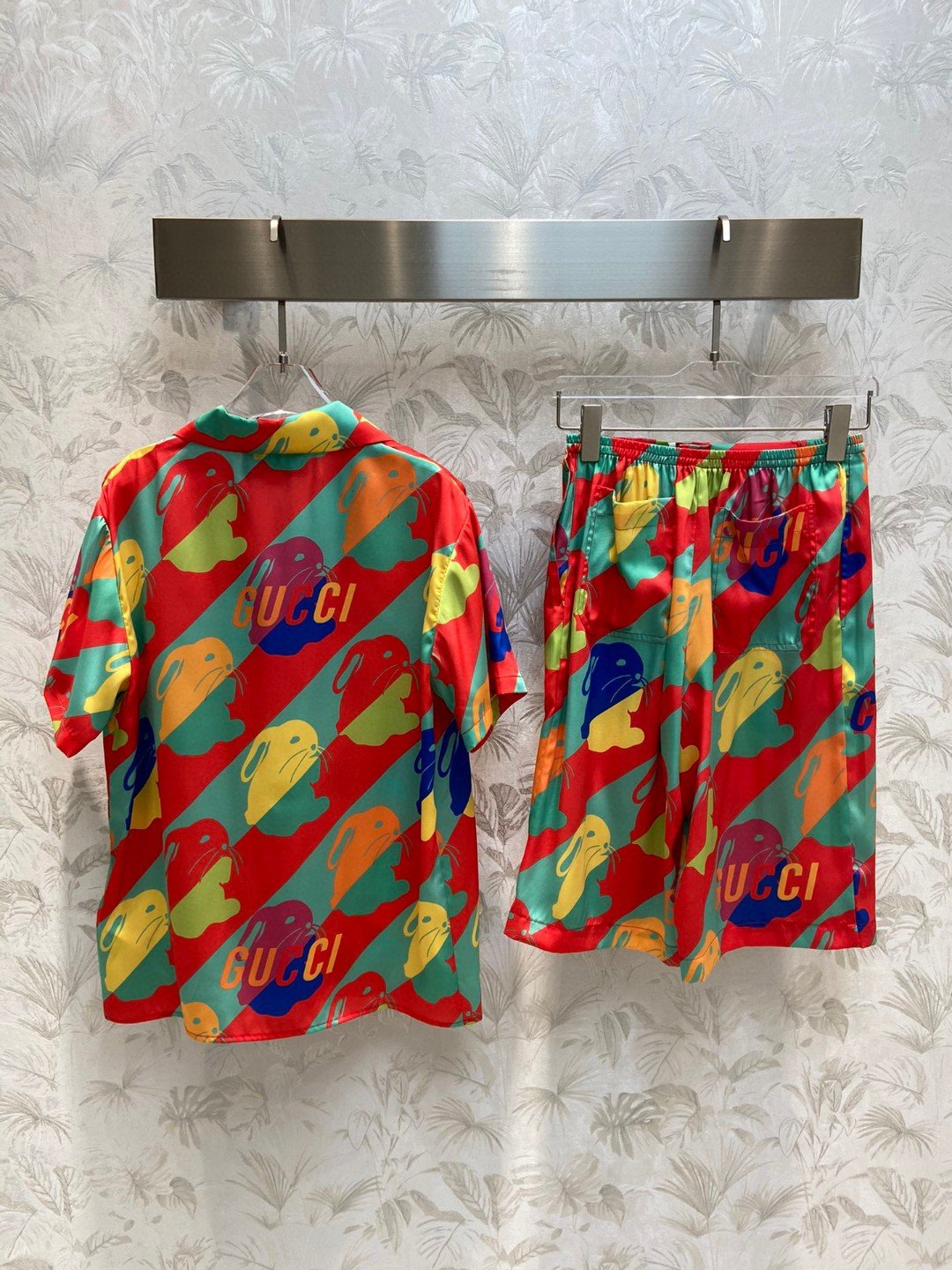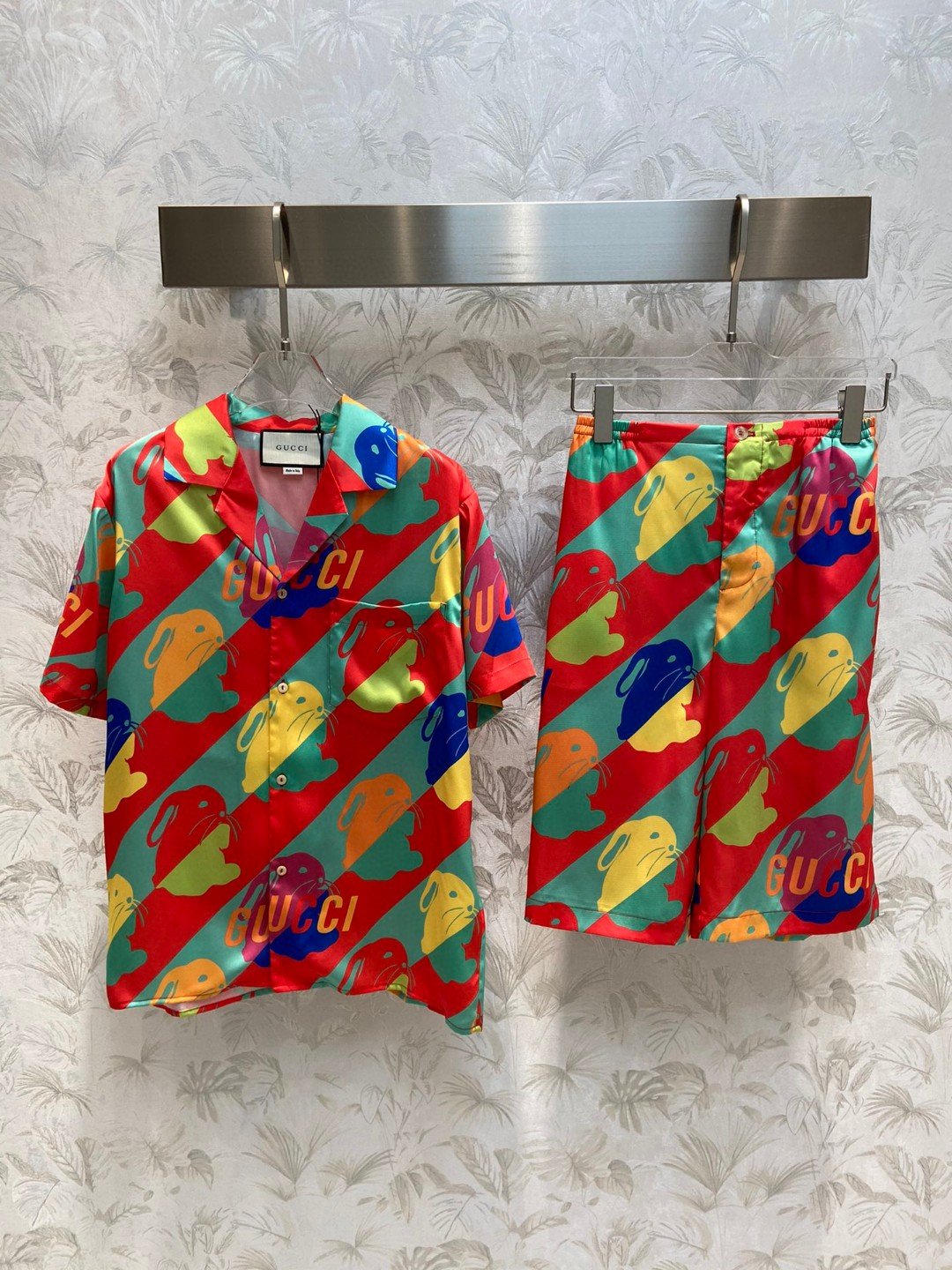 Gucci Rabbit Print Shirt And Shorts Multicolor