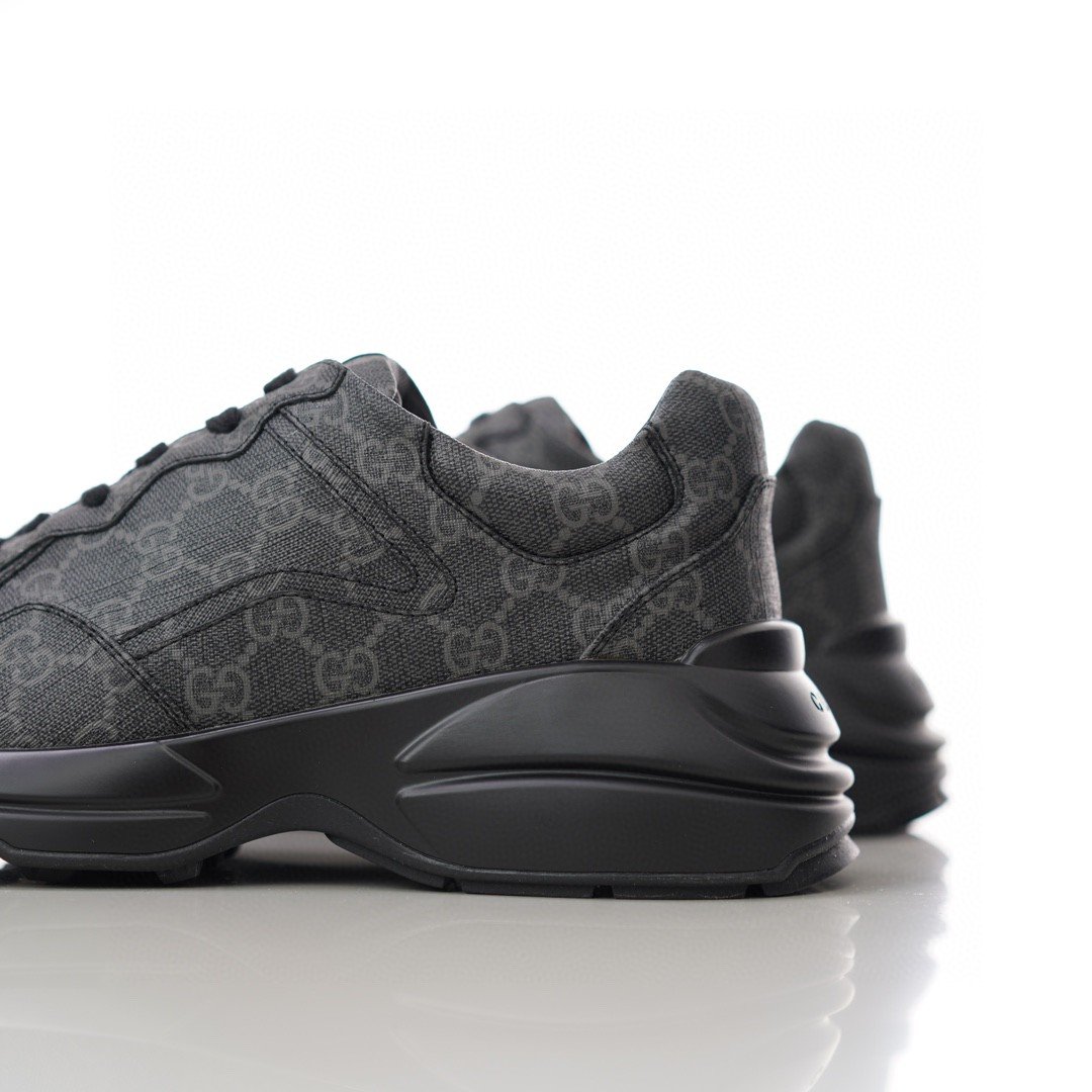 这款运动鞋采用厚底和笨重结构设计,带有复古风格的 Gucci 徽标,灵感源自 1980 年代的印花。