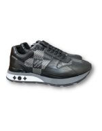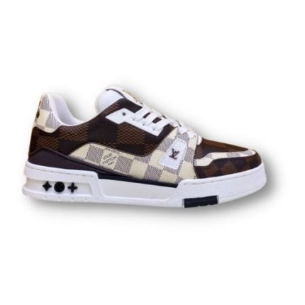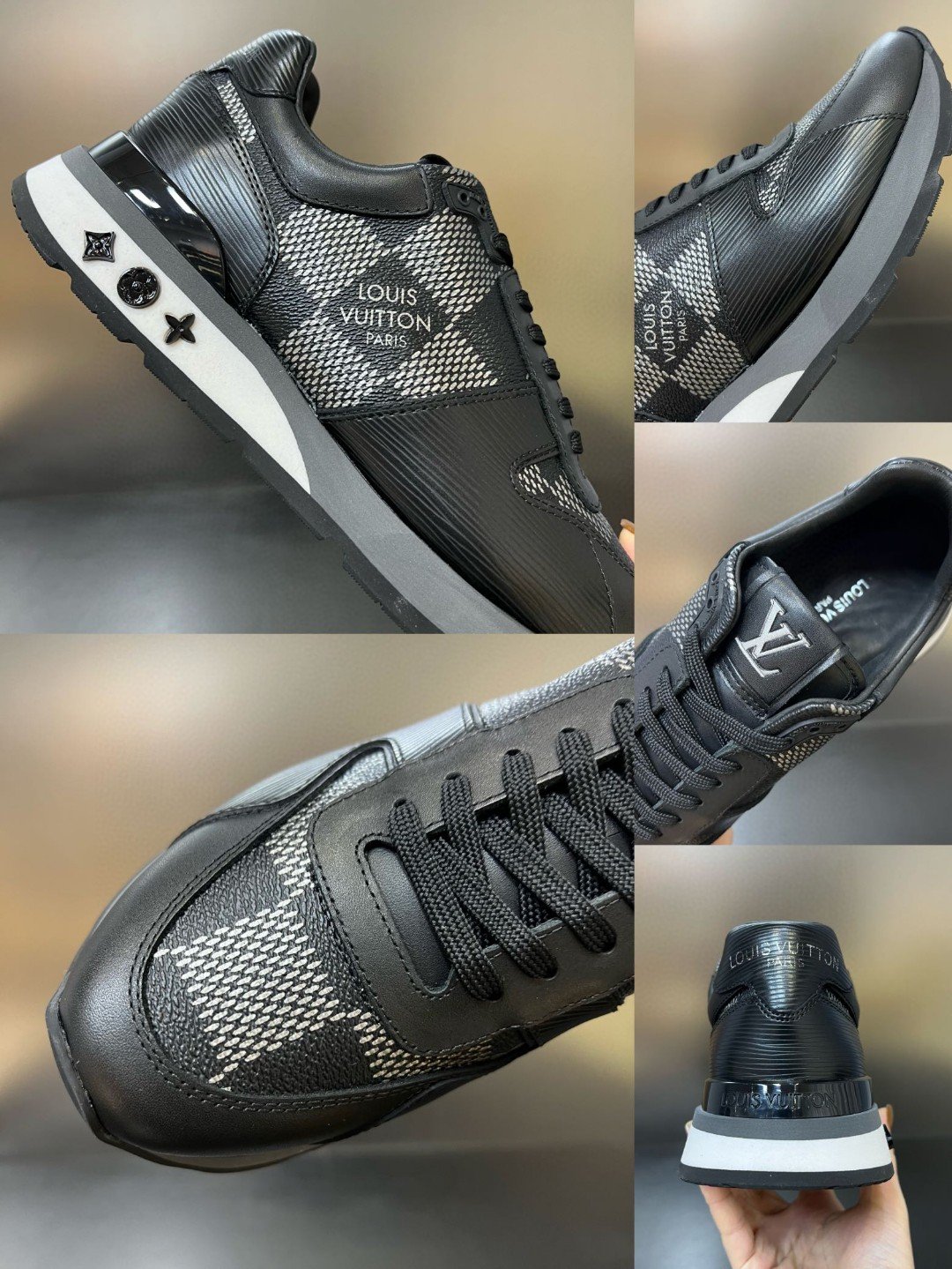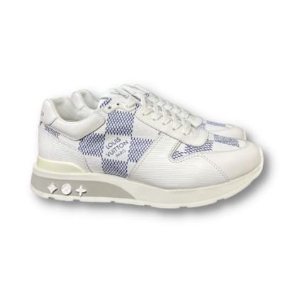 Run Away 运动鞋经过重新设计,印有 Louis Vuitton 标志性 Damier 图案的超大版本。光滑的饰边与这一设计相得益彰,其特点是其楔形橡胶外底的灵感源自跑鞋。此款鞋舌上有 LV 首字母签名,背面有 Louis Vuitton Paris 签名。