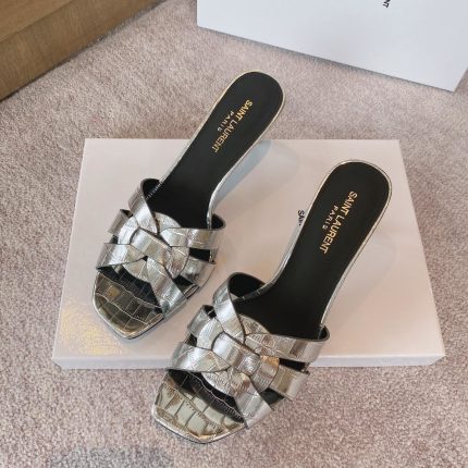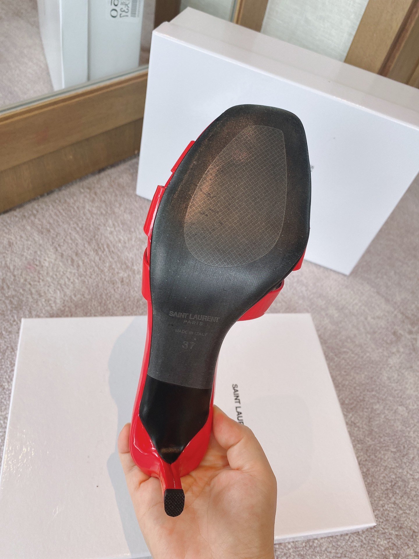 Saint Laurent 女士致敬高跟穆勒鞋,红色 YSL 女式