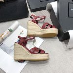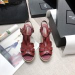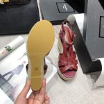 Saint Laurent 女式 Tribute 草编鞋坡跟红棕色女式 YSL