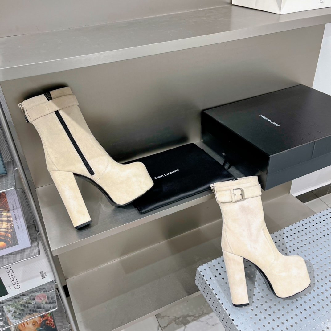 Saint Laurent 女式樱桃扣厚底短靴 白色 女式 YSL