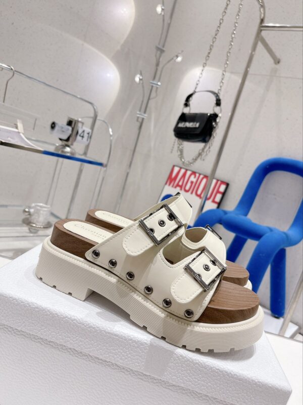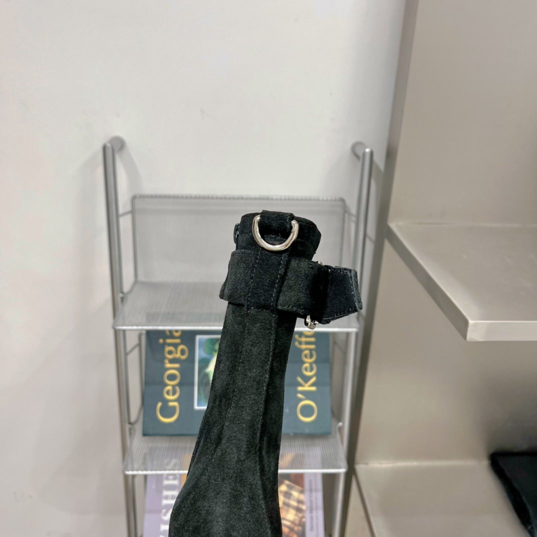 短靴采用圆头、粗跟和带扣,踝关节外侧有带扣。