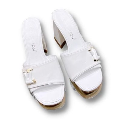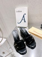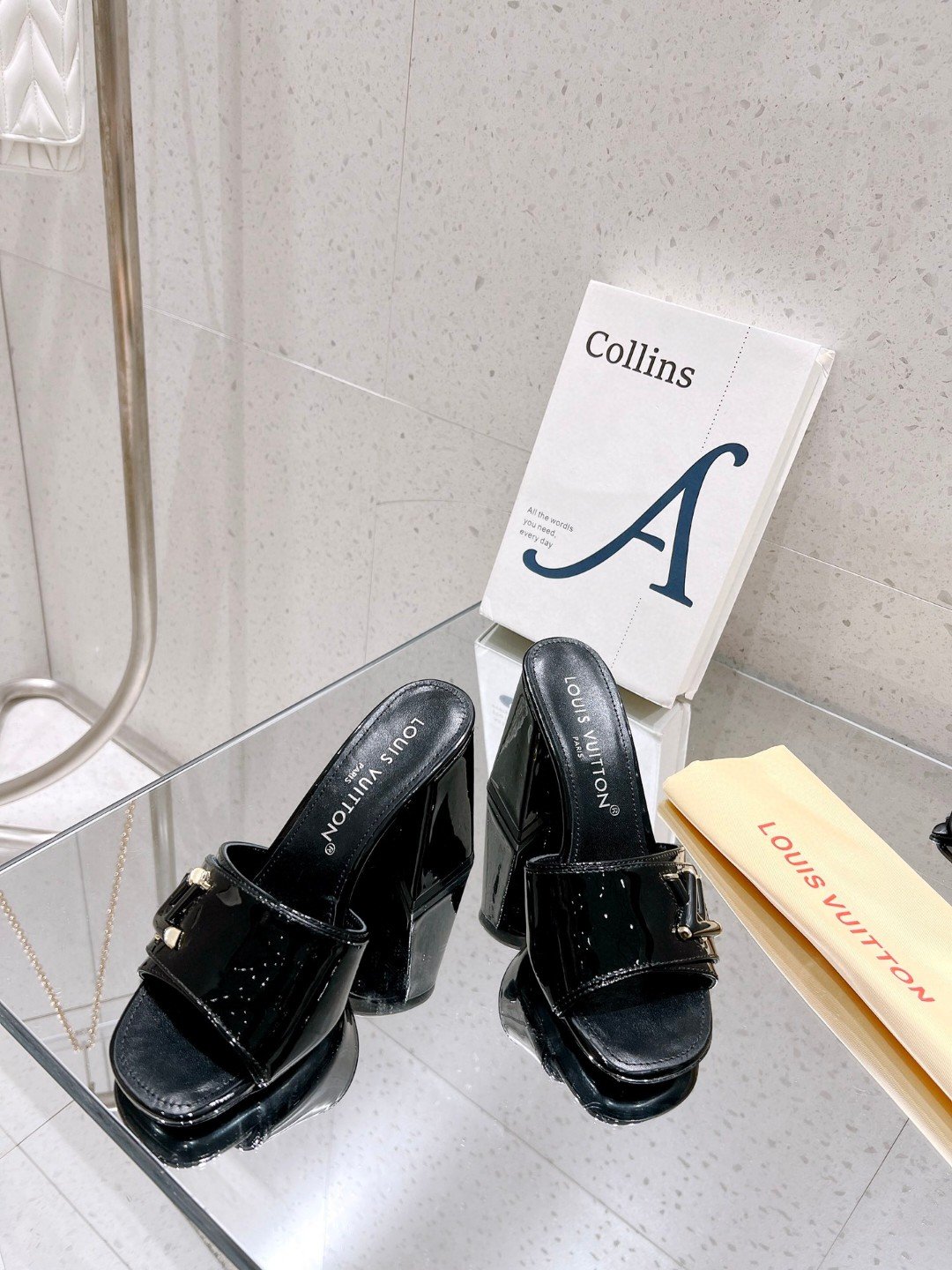 金属色为 Shake 穆勒鞋增添魅力,这款现代风格以其 V 形高跟粗跟而闻名。宽大的前肩带饰有宝石般的 LV 配饰,完全覆盖水晶,灵感源自标志性的 Twist 手袋。鞋垫上印有超大号 Louis Vuitton 标志。
