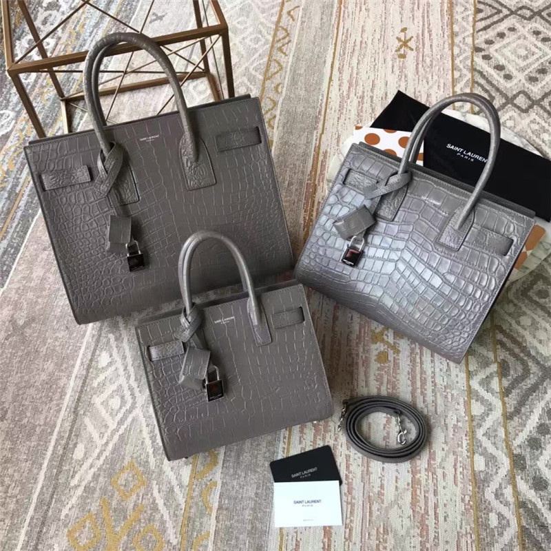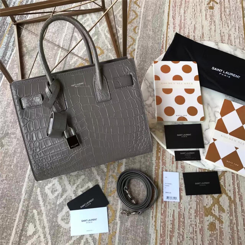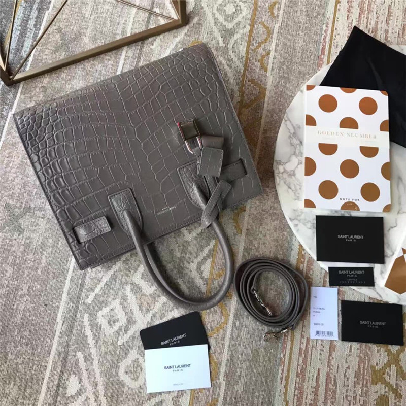 - SL0009 YSL女包 SLP经典款Sac de jour鳄鱼纹风琴包 圣罗兰2017年新款手提包 灰色