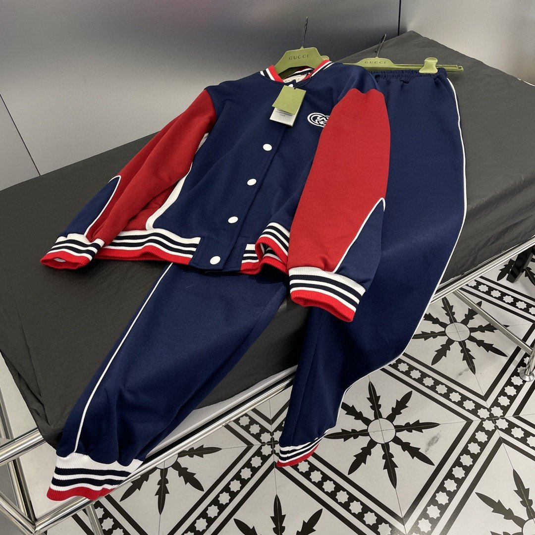Gucci Stripe Sport Bomber Jacket And Jogger Pants Navy Blue