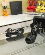 Saint Laurent Tribute 光滑黑色厚底凉鞋
