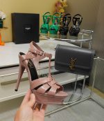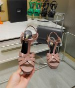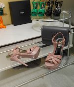 Saint Laurent Tribute 漆粉色厚底凉鞋