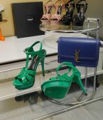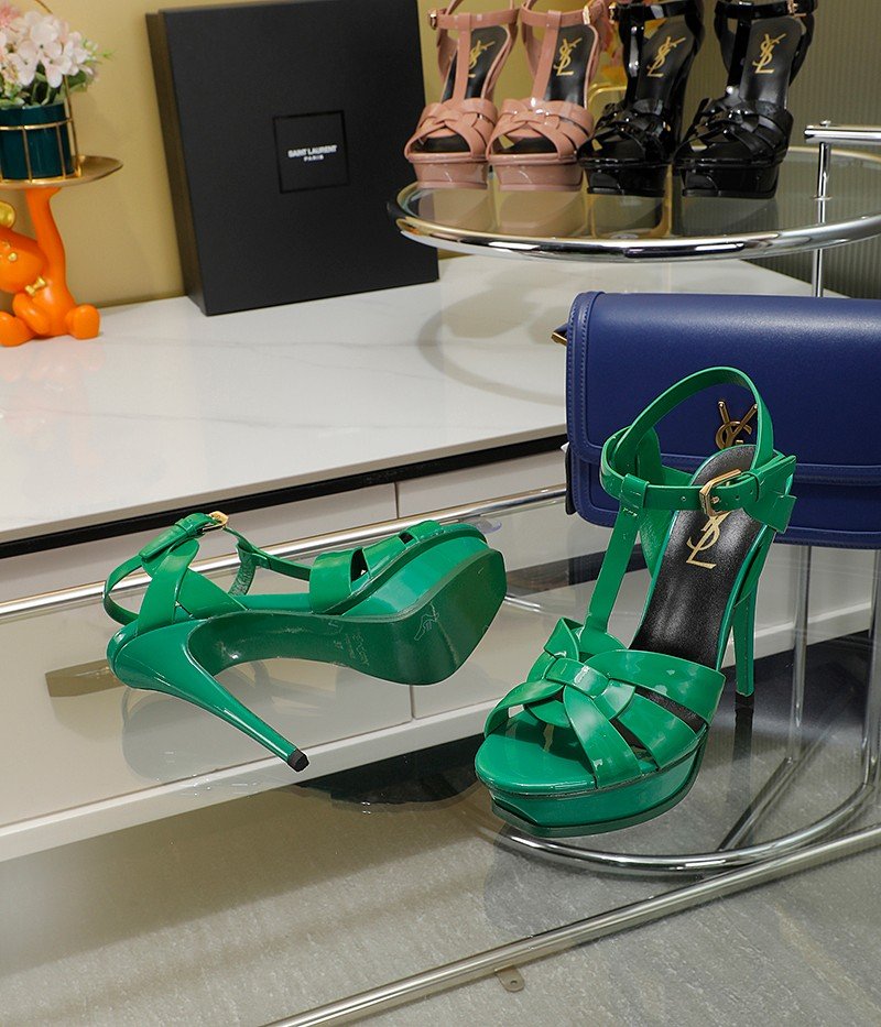 Saint Laurent Tribute 漆绿色厚底凉鞋