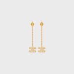 Celine Triomphe 水钻黄铜长耳环,金色饰面和水晶金色,适合女士 460NB6BCZ.35OR