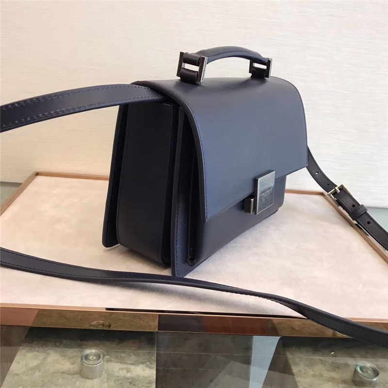 YSL女袋 Belle Chasse 复古翻盖包 小牛皮 圣罗兰单肩手提包 蓝色