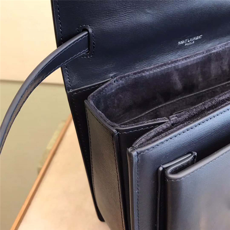 - YSL女袋 Belle Chasse 复古翻盖包 小牛皮 圣罗兰单肩手提包 蓝色