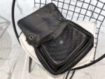 YSL女袋 Niki 金属感 塑料钉 半植柔皮 圣罗兰翻盖邮差包 黑色